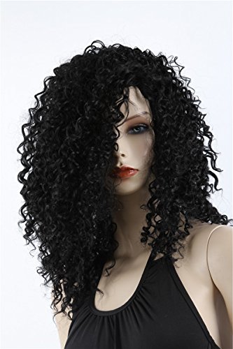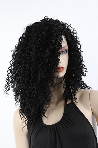 Synthetic Wigs Black Natural Colour Heat Resistant Kinky Curly 100% Heat Resistant Fiber Kinky Curly Free Style 24" Long Hair Natural Looking Fahion Wig...