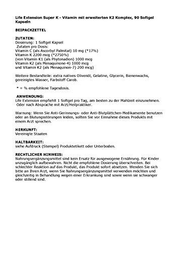 Life Extension Super K with Advanced K2 Complex formula provides vitamin K1 and the MK-4 and MK-7 forms of vitamin K2 in just one daily softgel. The virtue of this formula is that it provides the precise amount of the long-acting MK-7 form of vitamin K2 that recent human studies have shown provides optimal K2 levels over a 24-hour period. The MK-4 is included to provide the rapid increase in vitamin K blood levels that may account for its beneficial effects in certain studies. Vitamin K2 have been extensively researched and the findings reveal vastly improved effects compared to K1.Feature