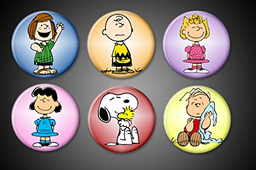 -. Feature : Peanuts Characters Magnets 1 INCH round cirles Set of 6 / Charlie Brown / Snoopy and Woodstock / Linus and Sally / Lucy and Peppermint Patty