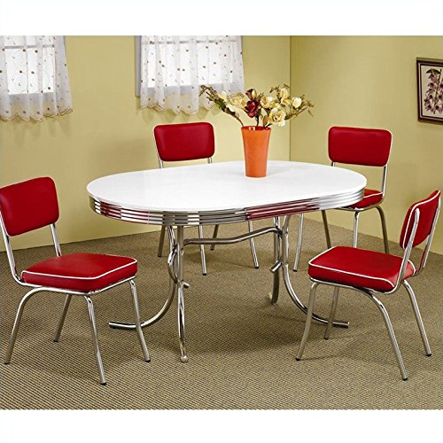 Create a relaxed yet distinctive look in your home with the retro designs of this side dining chair. The chrome plated frame and black or red cushioned seat and padded seat back offer a 1950's diner appeal. Complete this fun style by pairing this piece with the coordinating chrome plated dining table.
