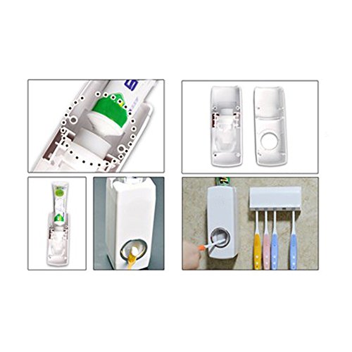 CoZroom Teika Automatic Hands Free Plastic Toothpaste Squeezer and Holder Set toothpaste squeezer,Pack of 1, 6.2 x 2.4 x 2.4 inches ,white