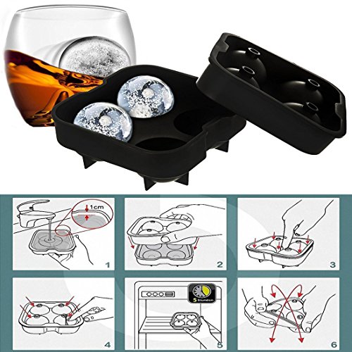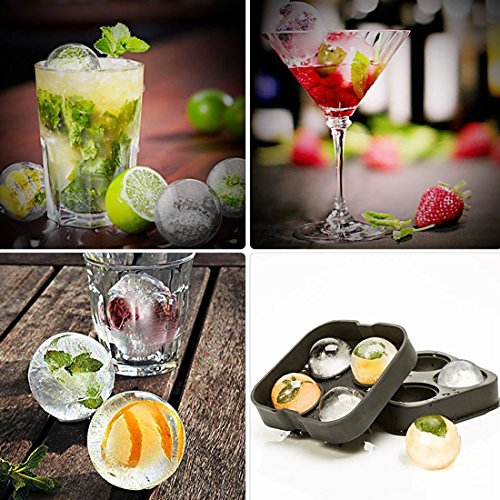 Kihappy Flexible Ice Ball Maker Mold Silicone Ice Tray Molds 4.5cm Round Spheres Capacity Perfect for Whiskey, Cocktail and Any Drink, Black