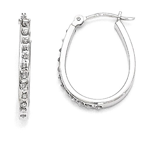 ICECARATS DESIGNER JEWELRY 14K WHITE DIAMOND FASCINATION OVAL HINGED HOOP EARRINGS EAR HOOPS SET FOR WOMEN