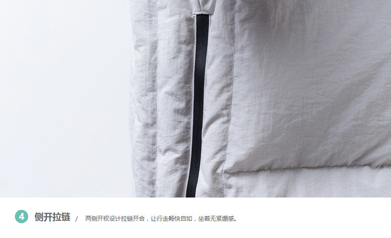 100%锦纶 里料:100%聚酯纤维 填充物:白鸭绒 含绒量:80% 充绒量:158.4g(S)168.4g(M)178.4g(L)188.4g(XL)