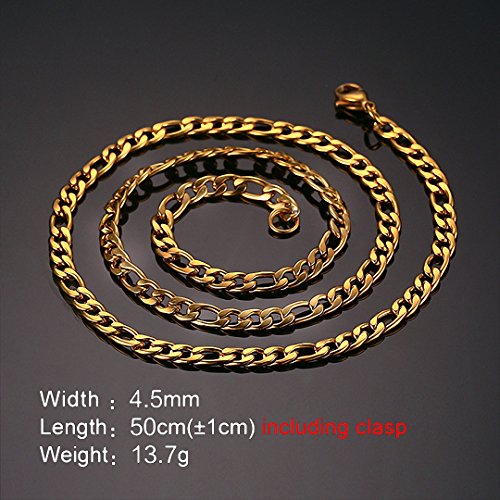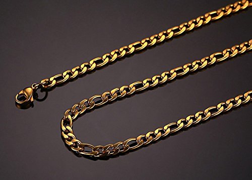 -. Feature : Imported / 5MM Wide Curb Link Figaro Chain, Lobster Clasp / Stainless Steel Chain Necklace Length: 18'', 20'', 22'', 24'', 26'', 28'' and 30'' / High Quality 18K Gold Stainless Steel Material, Hypoallergenic and Scratch Resistant , High Hardness, Never Fade, Highly Resistant to Rust and Corrosion / Perfect Gift for Father's Day, Mothers Day, Christmas, Birthday, Anniversary, Wedding, Engagement, or Valentine's Day Gift. Best gift for him, husband, dad, boyfriend and gift for her as well.