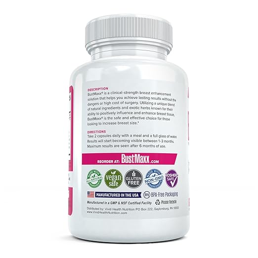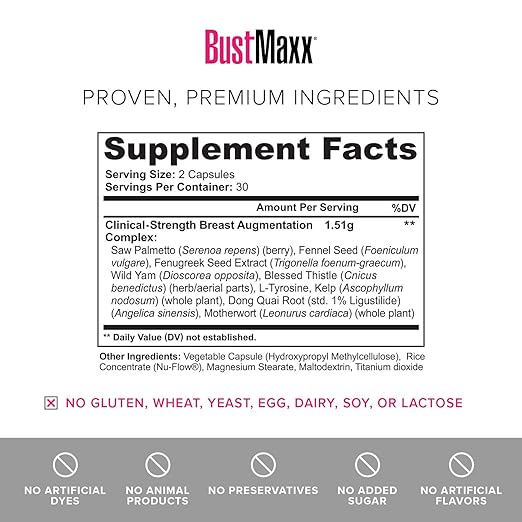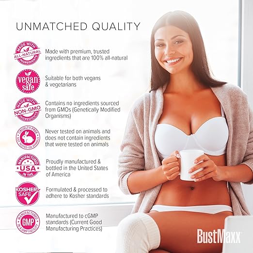 PREMIUM, NATURAL INGREDIENTS, NO CHEAP FILLERS: Many other breast enhancement supplements that are currently available use low-quality or unsafe ingredients along with cheap fillers to cut costs and maximize profits. BustMaxx uses all-natural ingredients and is manufactured in a cGMP certified, FDA registered facility under the most stringent safety standards. It is also animal cruelty free and has been HPLC and InfraRed tested to ensure the accuracy of our ingredients and their dosage.