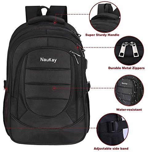 -. Title : Laptop Backpack with USB Charging Port,Water Resistant Business Travel School College Backpack for Men Women fit for 15.6 Inch Laptop and Notebook, Black