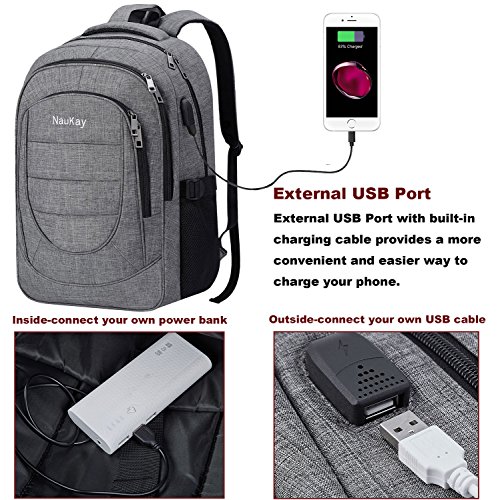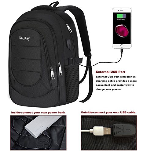 -. Feature : High-Quality Material: Anti-scratch durable Oxford cloth material for water-resistant and lasting durability and offers Light-Weight Carrying And Of Force Reinforcement.With Two "S" Curve Padded Shoulder Straps.Very convenient and comfortable / External USB interface: 1,Simply connect your power bank from inside built-in chargeable cable(Get a USB extension cable). 2.make your external USB connect with the USB port?and then it can charge your electronic device.This product are suitable for those occasions: daily working, school, leisure travel, outdoor climbing, hiking, cycling / FUNCTIONAL COMPARTMENTS - Organizational compartments for holding your Laptop/Notebook/iPad/iPhone, Power Bank, camera, pen, keys, wallet, purse, books, clothes, bottle and more, offers an ultra-organized way / Comfort: The innovative weight balance design makes you feel 20%-25% less weight. The body side and shoulder straps have excellent thick breathable mesh padding, offering your back plenty of cushioned comfort / Multi-Compartment: Dimensions:19 x 14 x 7.8 inch with dedicated Laptop compartment holds Laptops less than 17 Inch.Generous main compartments with padded sleeve for 15.6-inch laptops and several functional pockets allow you to keep all of your gear secure and organized in its place