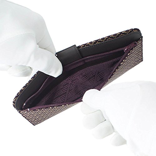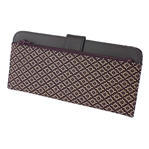 -. Feature : 天然の鹿革に漆で柄付けをしています(※上部の無地革は牛革) / サイズ: 8.5cm × 19cm × 1.3cm / 色柄: 紫地×白漆 菱菊 / 札入れ×1 カードポケット×2 小銭入れ×1 / 日本製 (印傳屋 上原勇七)
