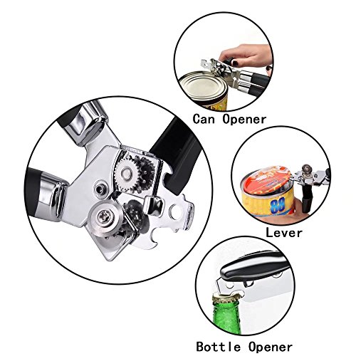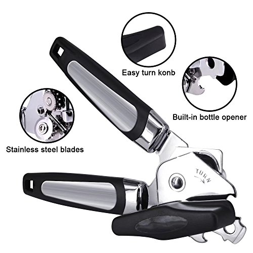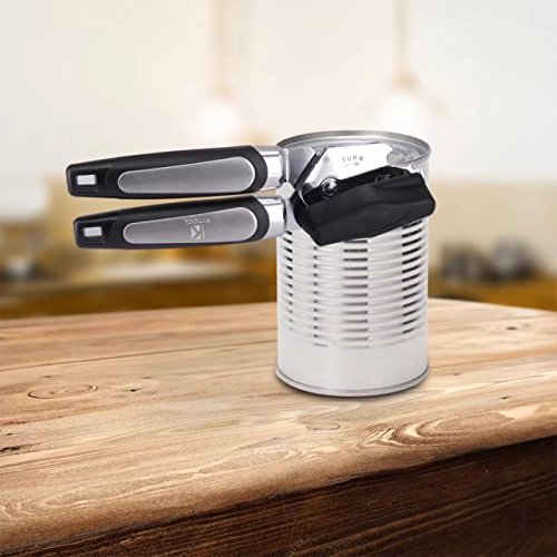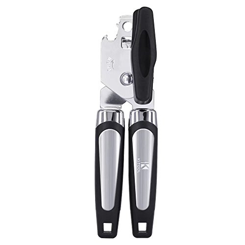 Studio : KITOOL Publisher : KITOOL Product Description KITOOL's Can Opener takes the pain out of opening cans. Its lightweight , non-slip , soft grip handles and easy to turn knob provide a secure and easy to hold grip. Made of high quality stainless steel with a polished chrome head, this can opener is durable and strong yet lightweight.Featuring a stainless steel cutting blade that stays sharp making it easy to open cans of many sizes with a clean cut.The razor sharp blade ensures the edges of cans are not jagged once removed preventing metal shavings from falling into the can. Even large large cans are opened with ease. Tired of having too many tools in the kitchen drawer? The built in pop top bottle opener combines two tools into one.Heavy duty yet lightweight, this kitchen must have is efficient, well made, and designed to last. 0
