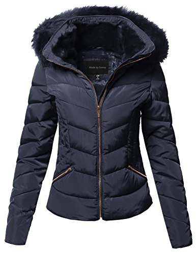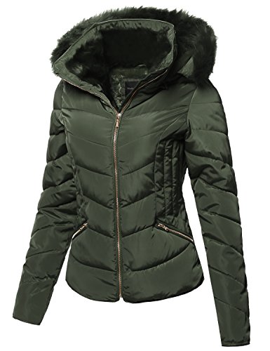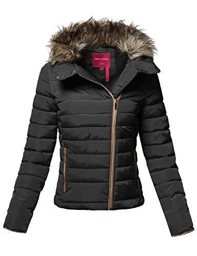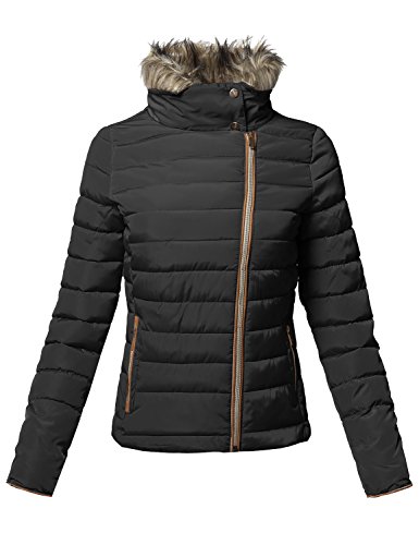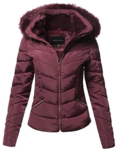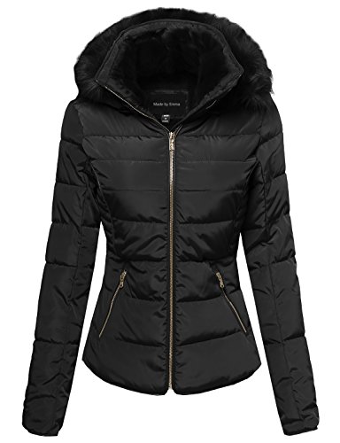 | MBE Women's Quilted Puffer Jacket With Detachable Faux Fur Hood |