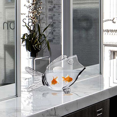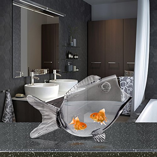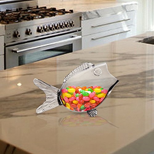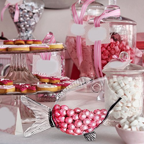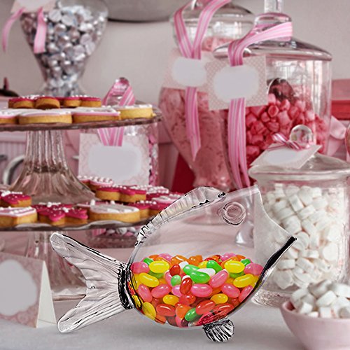 Clear Glass Fish Bowl - Fish Shaped on Stand for Goldfish ~ Candy Dish (Small and Large Sizes)