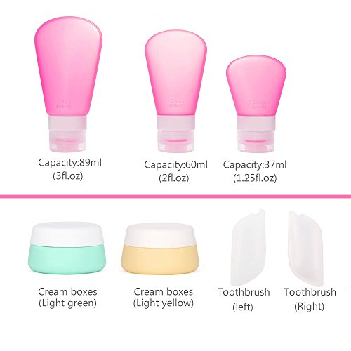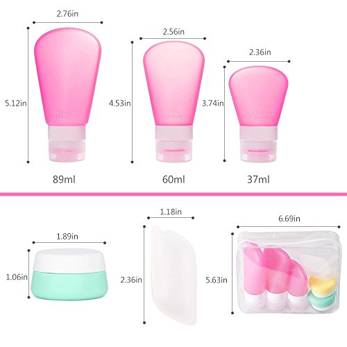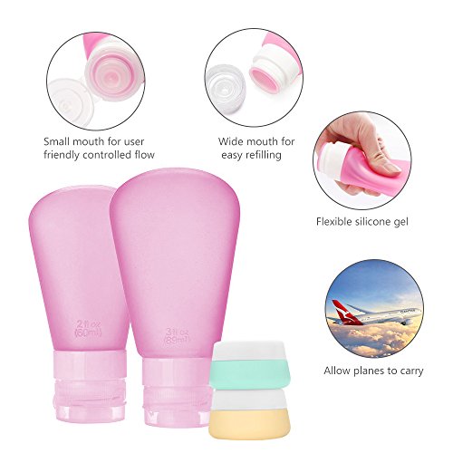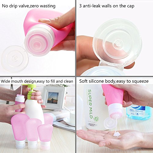 - 【EASY TO CARRY】- Set of small silicone travel bottles, soft to queeze, perfect for shampoo, conditioner, body wash, lotion and more. Being packed with a zippered clear toiletry bag, saving space, easy to carry, TSA airline carry-on approved