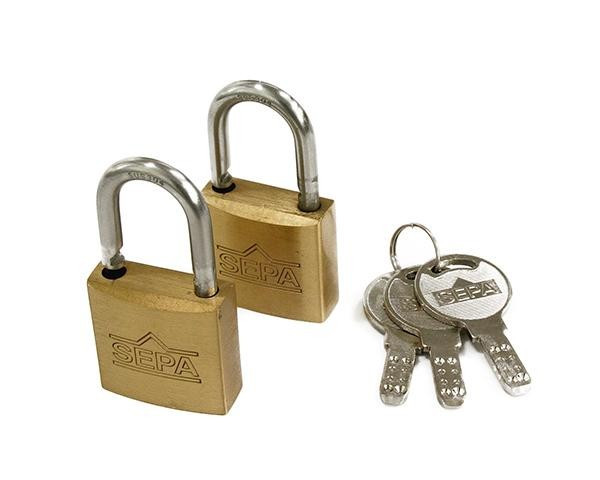 一般的な南京錠ですが、ステンレス弦のダブルロック機構・ディンプルキータイプで複製が困難です。(スペアキーはできません。 )業務用としてオススメします。 |