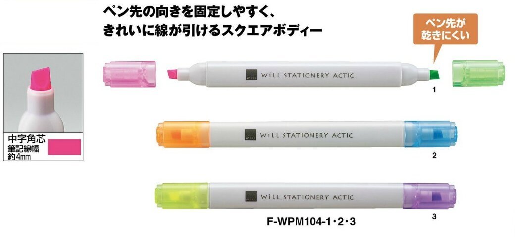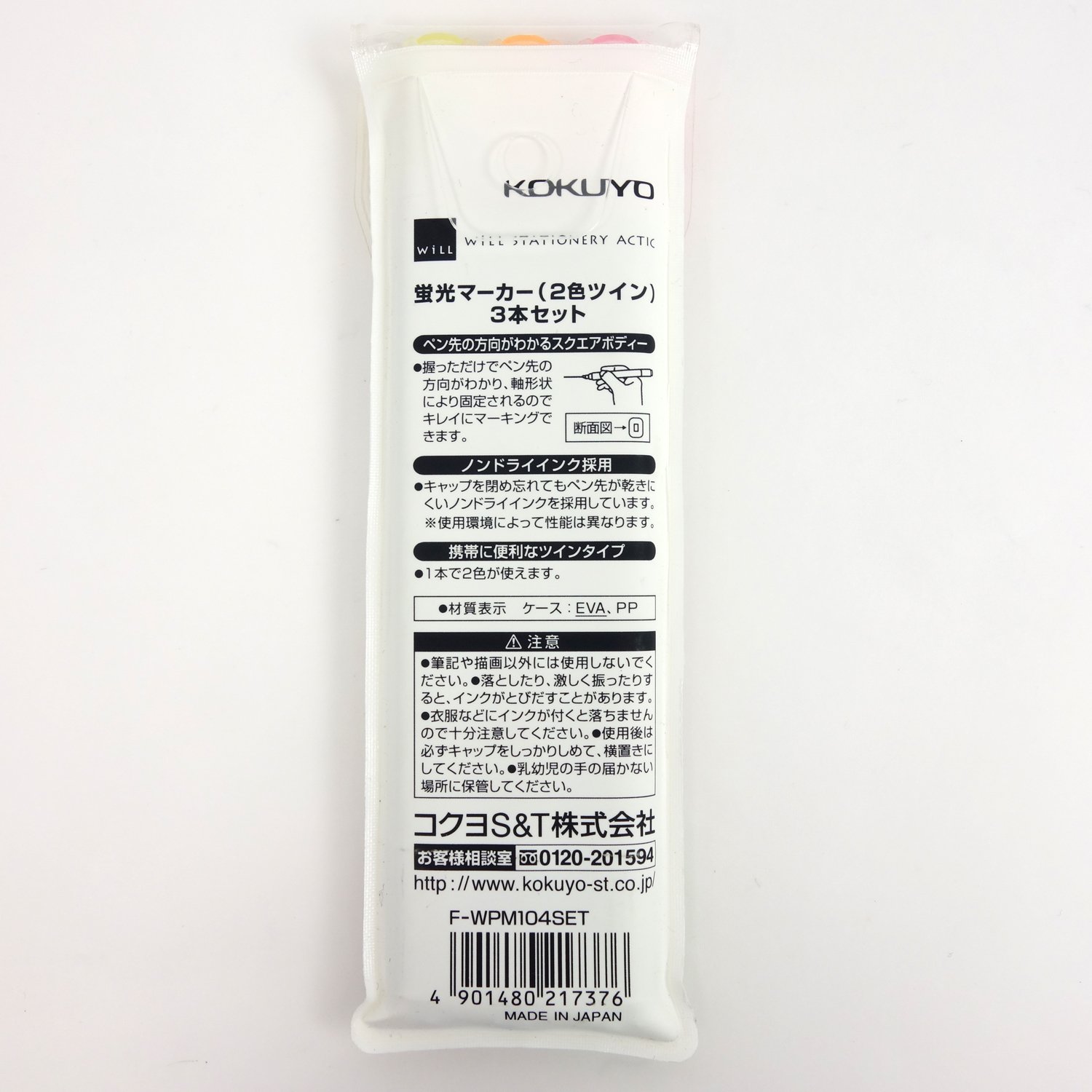 Kokuyo Will Stationery Actic Highlighter Twin Pen 3-Pack (F-WPM104SET)
