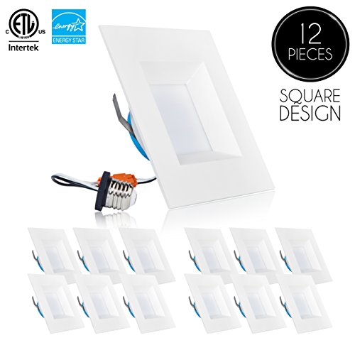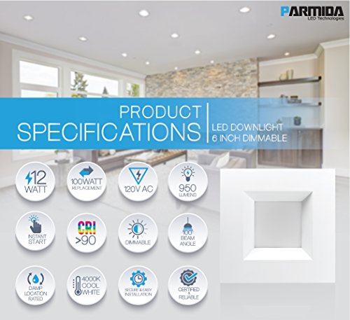 Parmida (12 Pack) 6 inch Dimmable LED Square Retrofit Recessed Downlight, 12W (100W Replacement), 950lm, 4000K (Cool White), ENERGY STAR & ETL, LED Ceiling Can Light, LED Trim
