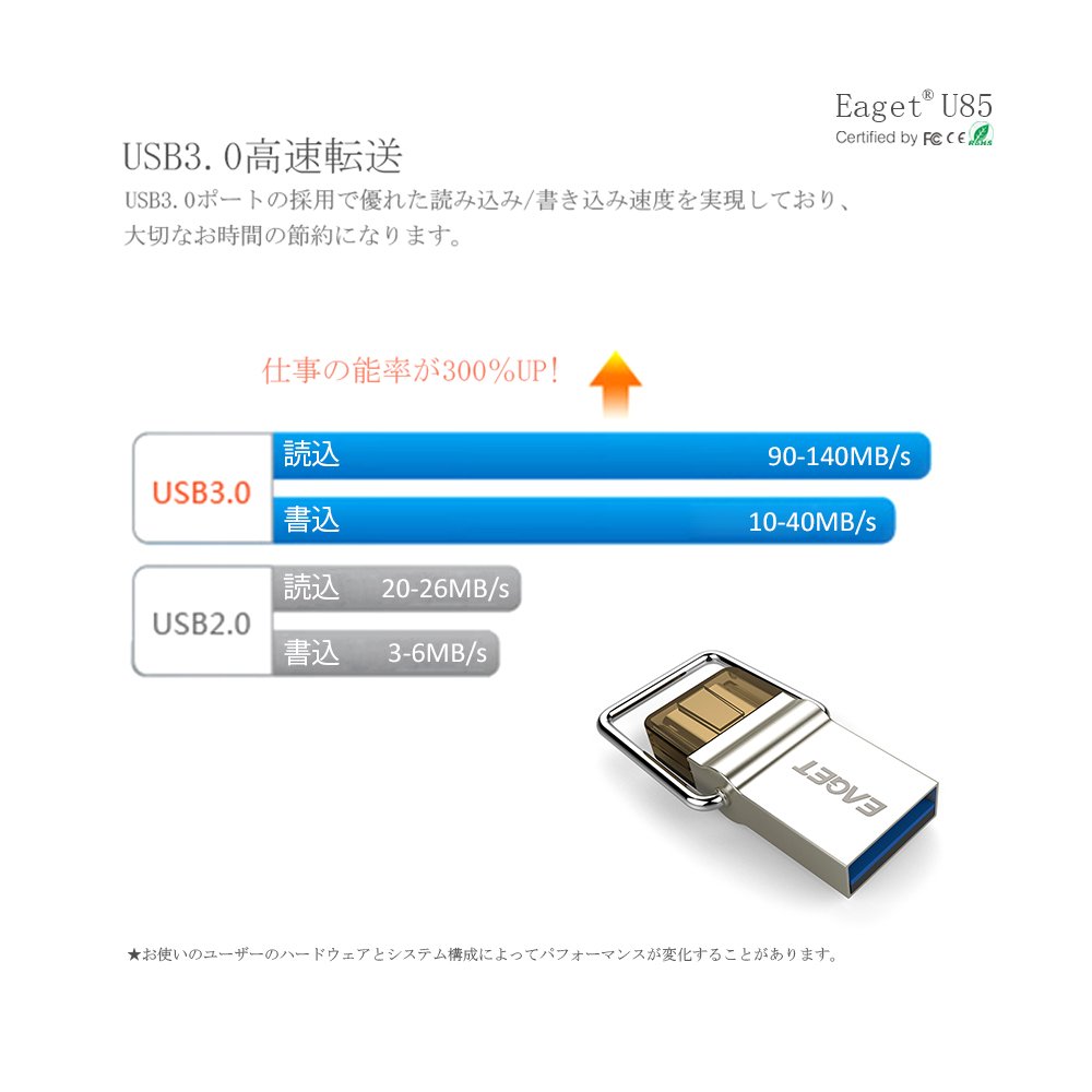Since the transfer speed of EAGET CU 10 is at least three times faster than USB 2.0, time can be shortened.