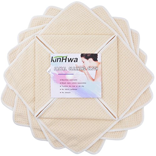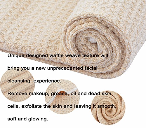 Microfiber Facial Cloths Fast Drying Makeup Remover Cloths Waffle Weave Washcloth Reusable Face Body Cloth 13 Inch x 13 Inch 6 Pack Cream