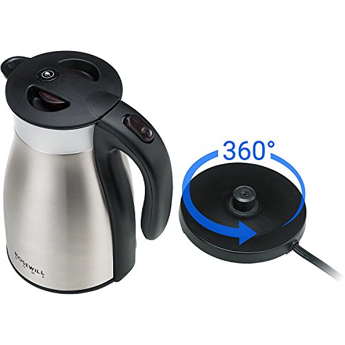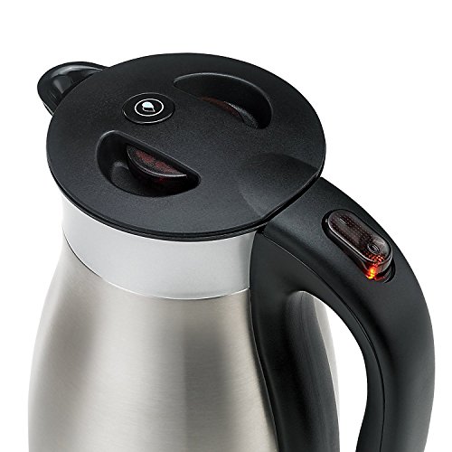 Features: - 120V, 1500W - Cord length: 29.53"- Double wall 18/8 304 stainless steel vacuum construction for maximum insulation- Long time heat preservation (2hrs>=176°F 4hrs>=155°F), energy saving- Electronic shut-off and boil dry protection- Luminous on / off indicator switch- Lever controlled anti-spill stopper mechanism with non-drip pouring spou- Cool touch with housing temp. under 104°F- 360° rotatable base for left or right hand use- Secure, comfortable handle- Safety lock lid