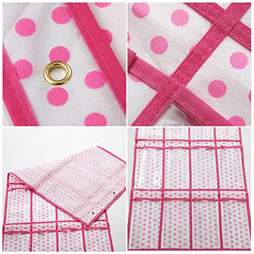 -. Feature : The Uphome Clear Organizer Bag with 24 pockets - Save some space in your wardrobe (or on your floor), over-the-door hanging shoe organizer which is made from stylish, durable fabric. / Versatile design also great for storing accessories, craft supplies, electronics, and more. / 3 over-the-door steel hooks make the hanging process quick and easy for any door. / 24 EXTRA LARGE POCKETS -- Each pocket 8.7" x 4" x 3"(22 x 10 x 7 cm) -- unlike many shoe organizers with tight, narrow compartments. / Product Size: 19" wide x 67" tall/deep(49 x 170 cm);Material: Polyester fabric+PEVA