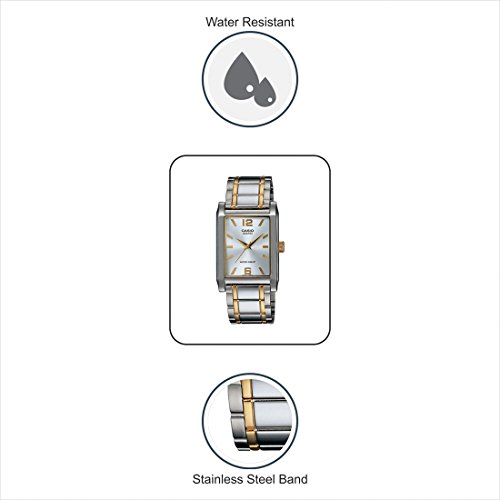 Brand, Seller, or Collection Name:Casio Model number:EAW-MTP-1235SG-7A Part Number:MTP-1235SG-7A Item Shape:Rectangle Dial window material type:Mineral Display Type:Analog and digital Clasp:Fold-over-clasp-with-double-push-button-safety Case material:Metal Case diameter:28 millimeters Case Thickness:8 millimeters Band Material:Metal Band length:Men's Standard Band width:20 millimeters Band Color:Silver Dial color:White Calendar:No Special features:measures-seconds Item weight:5.60 Ounces Movement:Quartz Water resistant depth:30 Meters