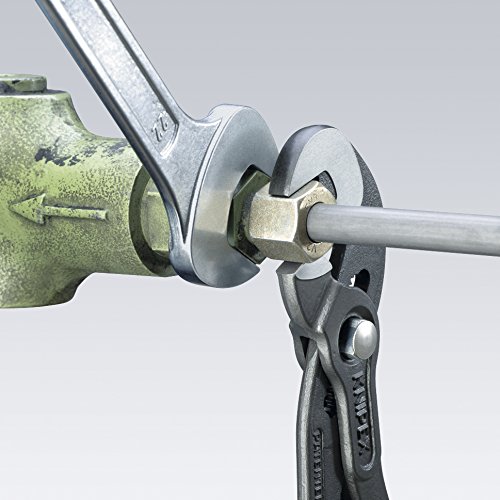 The plier-type gripping movement of the jaws allows threaded connections to be tightened and released quickly using the ratchet principle