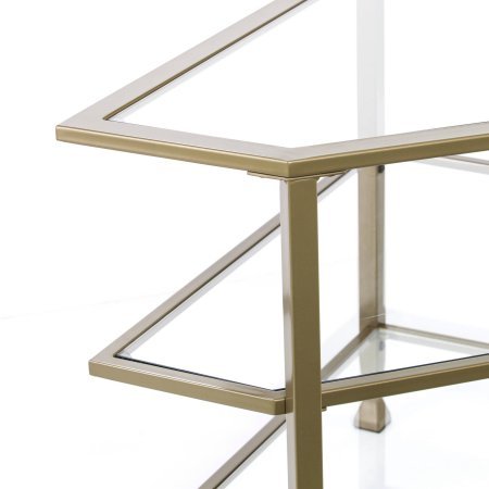 -. Title : Contemporary to transitional style | Jumpluff Metal/Glass Corner TV Stand, Matte Khaki by Southern EnterP.R.Ises
