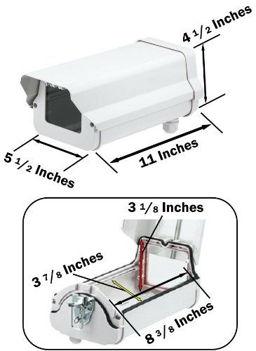 -. Binding : Electronics -. Brand : Mono-(Security & Surveillance) -. EAN : 0028672369829 -. Feature : 11 Inch Outdoor Back Open Camera Housing Enclosure & 10 inch Arm Bracket for Outdoor CCTV Brick Style Surveillance Camera / DESCRIPTION: This 11 inch CCTV camera housing & 10 inch Arm Bracket is ideal for protecting your camera from vandalism or weather. / SPECIFICATIONS: **Type: 11 inch Outdoor Back Open Camera Housing** **Material: Aluminum** **Appearance Size: [5.5(W) x 4.5(H) x 11.0(L)] Inches** **Suitable Camera Size: [3.9(W) x 3.1(H) x 8.4(L)] Inches** **10 inch Arm Bracket** *Material: Aluminum* *Arm Length: 255mm = 10 inches* *Max Load: 22 lbs* *Swivel Angle: 360 degrees* *Tilt Angle: 90 degrees* / FREE SHIPPING: This item ships by UPS Delivery time is usually (3 to 6) business days from purchase date. Sorry no PO Boxes / RETURNS: ShopBox items that are purchased may be returned within 60 days of receiving them for either a refund, replacement, or an exchange. ShopBox items can be replaced or exchanged (pending product availability). If there's an error on our part related to your order, we will issue a credit for your order and any applicable shipping. Otherwise ShopBox is not responsible for return shipping cost. Please contact us through Amazon before any returns are made. -. Label : Mono. -. Manufacturer : Mono. -. Model : ML-605S -. MPN : ML-605S ML-205N -. PackageQuantity : 1 -. PartNumber : ML-605S ML-205N -. ProductGroup : Photography -. ProductTypeName : SURVEILANCE_SYSTEMS -. Publisher : Mono. -. Studio : Mono. -. Title : 11 Inch Security Camera Housing Enclosure & 10" Arm Bracket for Outdoor CCTV Brick Style Surveillance Camera -. UPC : 028672369829