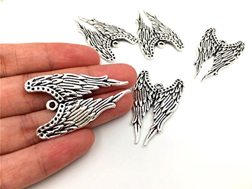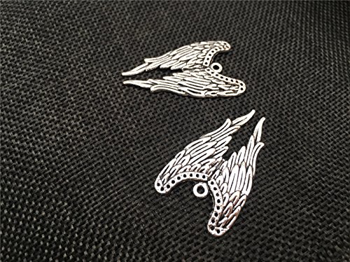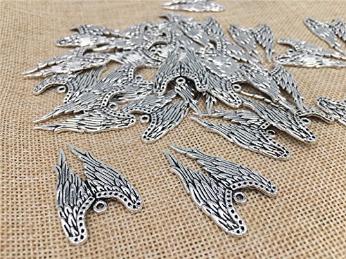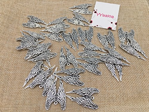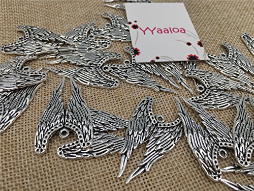 YYaaloa 25pcs 24mmx39mm Vintage Style Angel Wings Charms Pendants DIY Antique Charms Pendant Mega mix for Crafting,Bracelet Necklace Jewelry Findings Jewelry Making Accessory (Silver)