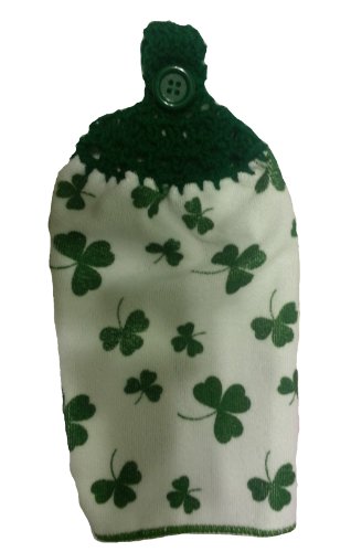 Handcrafted Green Crochet Topped Shamrock Theme Kitchen Towel