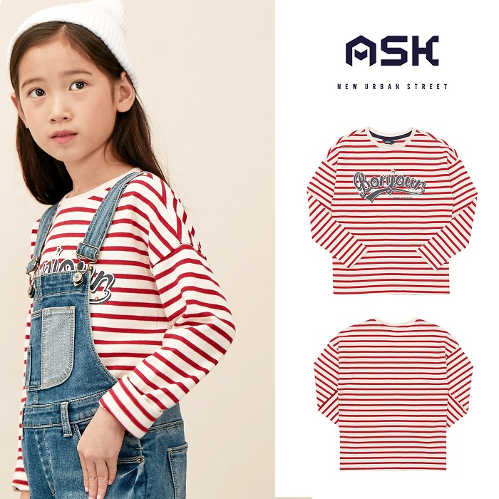 *박시한 드롭숄더 스타일로 깔끔하면서 화사한 스트라이프로 포인트를 준 여아 티셔츠입니다.