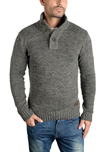 !Solid SOLID Philario Herren Strickpullover Troyer aus 100% Baumwolle Meliert, Grosse:M, Farbe:Dark Grey (2890)