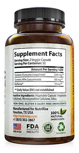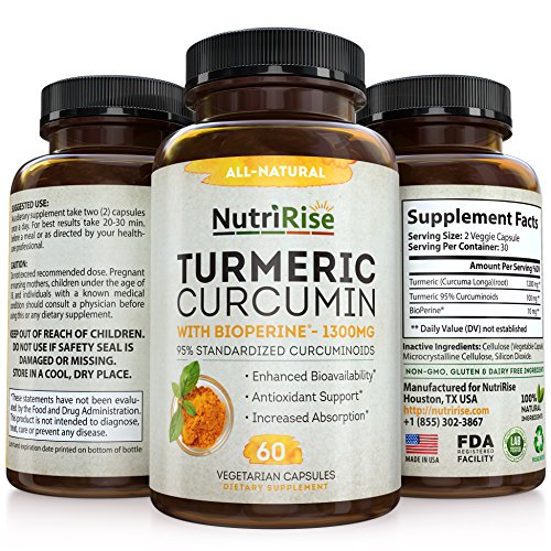 ALL NATURAL, NON-GMO, PURE TURMERIC PILLS: NutriRise Pure Turmeric Curcumin Capsules contain 1300 mg of natural turmeric powder (curcumin powder) derived from 100% pure turmeric root and are FREE of gluten, dairy, binders, fillers, preservatives and allergens