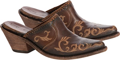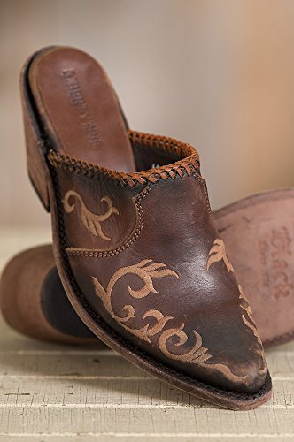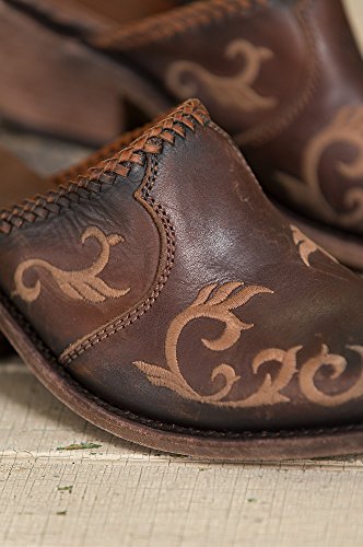 Studio : Liberty Black Publisher : Liberty Black Binding : Apparel Product Description Comfy for everyday wear in a decorative design that lights up any outfit, the Mule leather shoe rules. Luxurious Mexican bovine leather embroidered with artistry is finished with a braided leather contrast border, for slip-on shoes that beg to be seen. Soft leather lining and a cushioned leather insole make these shoes the chosen footwear for those precious after-work hours. They're finished with a leather outsole and a 2-1/2" stacked wooden heel with a non-slip sole. Made in Mexico. 0