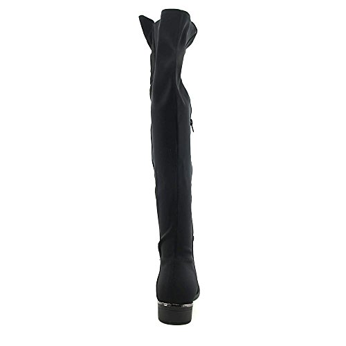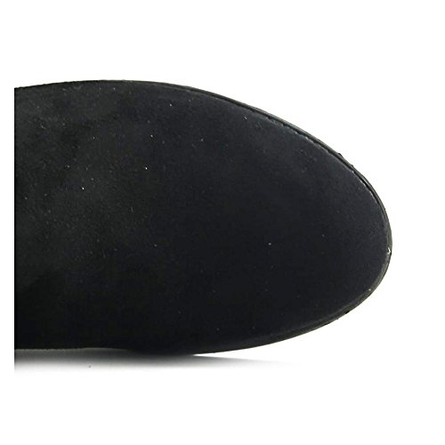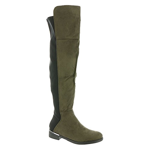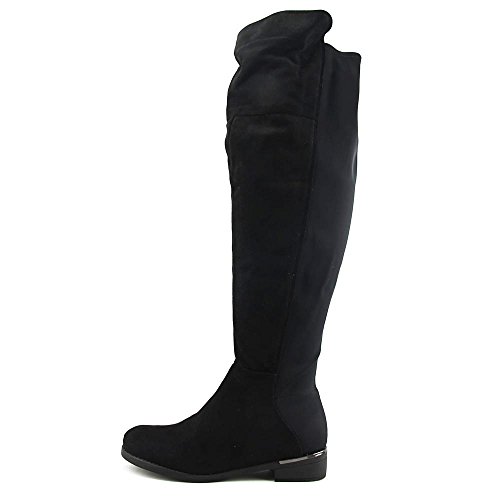 Binding : Apparel Product Description *An edgy update on mod style, with a cool colorblock look accented by a metallic heel band *Synthetic suede upper with comfortable stretch back panel *22" shaft height *Lightly padded footbed *Side zipper for easy entry *1" heel height 0