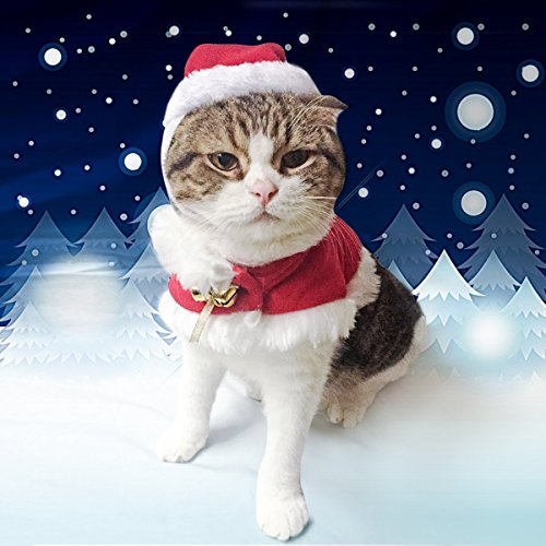 -. Title : Cat Christmas Costume By LESYPET - Cat Christams Cloak with Santa Hat for Kitty & Puppies
