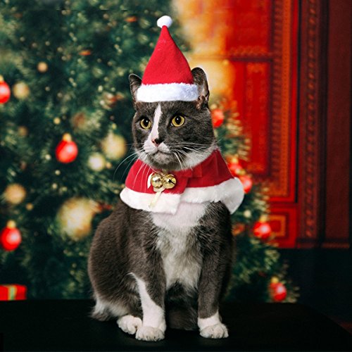 -. Feature : SIZE: Fits most average sized cats and small dogs, fit your cat's neck circumference from 8.6 to 10.2 inches (22 to 26 cm). / MATERIAL: LESYPET cat christmas costume for your cat and small dog is made out of velvet and acrylic, cute costume designed for your pets. / CUTE CHRISTMAS SET: Adorable christmas cloak and santa hat, make the pet more attractive and beautiful. / EASY TO CLEAN: The cat christmas costume smooth soft, durable and machine washable, please wash it firstly before to use. / WARM TIPS: Please double check the size detail, Don't order it according label size only.