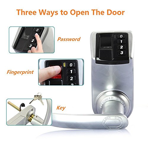 - Feature : Three ways to unlock: fingerprint, user code/password, mechanical key. Support up to120 fingerprints. / Easy installation with no wiring required. Perfect for 3mm-60mm thickness knob door; / Codes easily added or deleted right at the keypad using the lock's unique 6 digit programming code / PVD coated surface enhanced the durability of the lock. / Suitable for home, office, school, bank, etc