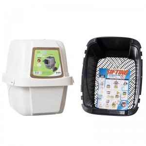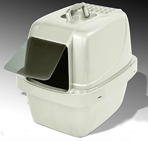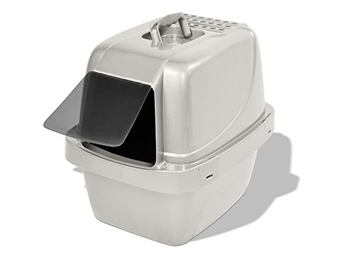 Product Description Throw out your scoop and save time with our Van Ness Sifting Enclosed Cat Pan. This smartly designed unit features two nesting pans and a sifting screen. Stack the pans with the sifting screen on top and fill with clumping litter. When you lift the sifting screen the litter sifts out into the pan, leaving clumps that you throw away. Replace the sifting screen in the empty pan, move the litter from the full to the empty pan, restack, and you're finished! Roomy pan features a locking lid with filter, carrying handle and removable odor controlling door. Made of durable, easy to clean plastic. Made in USA. 0