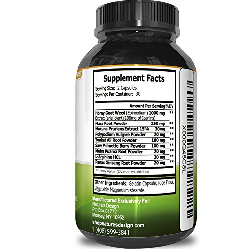 Nature's Design: Best Quality for the Best Value Our best-selling Horny Goat Weed pills are encapsulated within easy-to-swallow and rapid releasing soft gels. They are gentle on the stomach and get quickly absorbed for immediate positive effects. Our supplement is suitable for both men and women, especially aging individuals. Gain strength, stamina, and libidinal energy by including our supplement to your daily diet. Feel the difference of nature's powerful sex enhancers at an amazing value. Produced under a GMP certified lab, we ensure our customers that our product meets FDA standards for identity, purity, and composition. 100% Money-back Guaranteed We are the best buy in the market when it comes to naturally sourced supplements. Your satisfaction is 100% guaranteed as we offer a full refund policy if you are not happy with your purchase. Get all your money back without any questions asked! Order now while supplies last!Feature