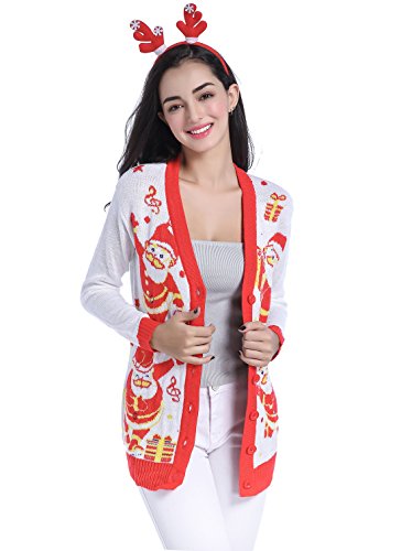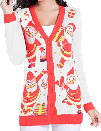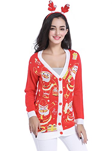 v28 Women Christmas Sweater, Ugly Ladies Girl Happy Santa Xmas Sweater Cardigan (Large, DanceSanta Red)