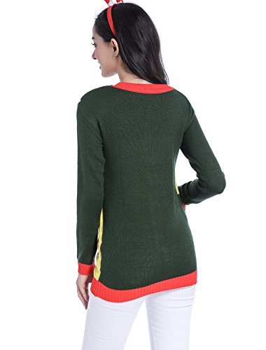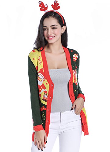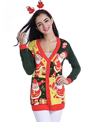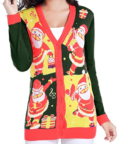 v28 Women Christmas Sweater, Ugly Ladies Girl Happy Santa Xmas Sweater Cardigan (Large, DanceSanta Green)