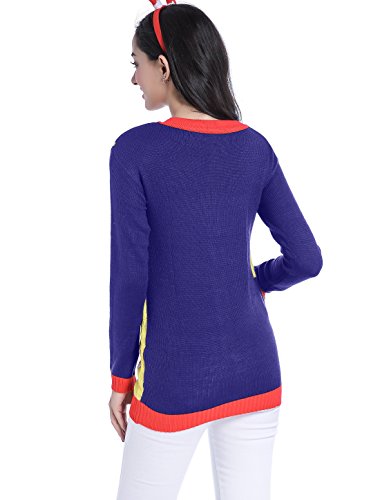 v28 Ugly Christmas Sweater, Women Ladies Girl Vintage Knit Xmas Long Jumper(Celebrate Navy,M)