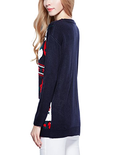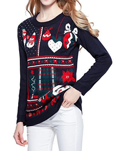 v28 Ugly Christmas Sweater, Women Ladies Girl Vintage Knit Xmas Long Jumper(Celebrate Navy,L)
