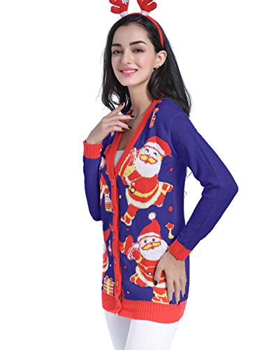 v28 Women Christmas Sweater, Ugly Ladies Girl Happy Santa Xmas Sweater Cardigan (Large, DanceSanta NightBlue)