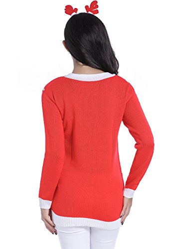 v28 Ugly Christmas Sweater, Women Ladies Girl Vintage Knit Xmas Long Jumper(Celebrate Red,L)