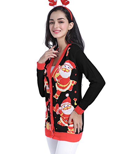 v28 Women Christmas Sweater, Ugly Ladies Girl Happy Santa Xmas Sweater Cardigan (Large, DanceSanta Black)
