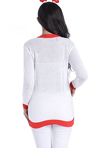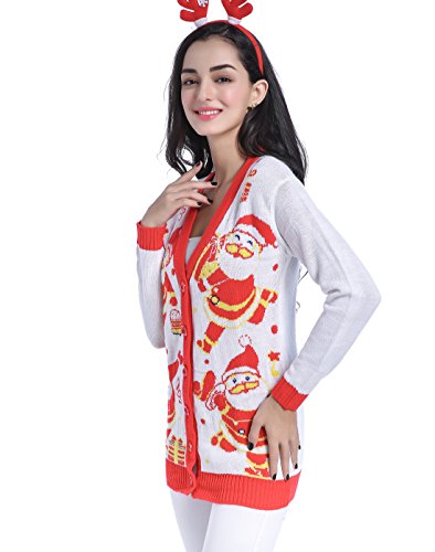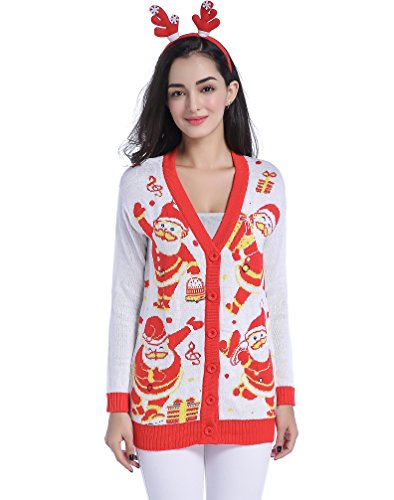 v28 Women Christmas Sweater, Ugly Ladies Girl Happy Santa Xmas Sweater Cardigan (X-Large, DanceSanta White)