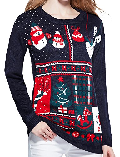 v28 Ugly Christmas Sweater, Women Ladies Girl Vintage Knit Xmas Long Jumper(Celebrate Navy,S)