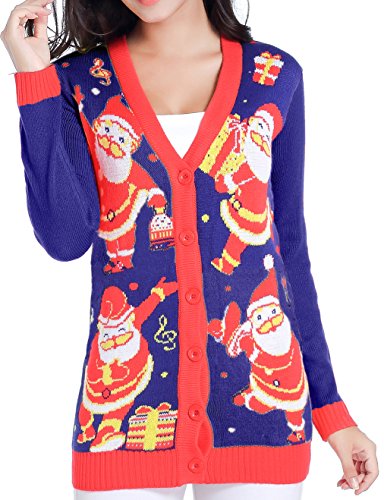 v28 Women Christmas Sweater, Ugly Ladies Girl Happy Santa Xmas Sweater Cardigan (Medium, DanceSanta NightBlue)